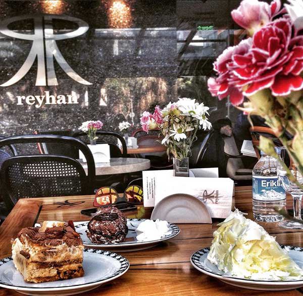 İzmir’de 1965’ten bu yana sürdürdüğü kalite hizmet anlayışı ve misafirlerinin takdiri ile markalaşan Reyhan, alıştığınız lezzetlerini, kişiye özel, klasik, şantili ve kove pastalarını, el yapımı leziz çikolata çeşitlerini, tatlı & tuzlu kurabiye ve cheesecake çeşitlerini, rokoko, sükse, sandey, polovak, elevit, isina gibi dondurmalı birbirinden lezzetli ürünlerinin yanında limonatası, özel reyhan çayı ve dünya kahvelerinin yer aldığı geniş mönüsünü butik işletmecilik anlayışı ile harmanlayıp, misafirlerini ağırlıyor.